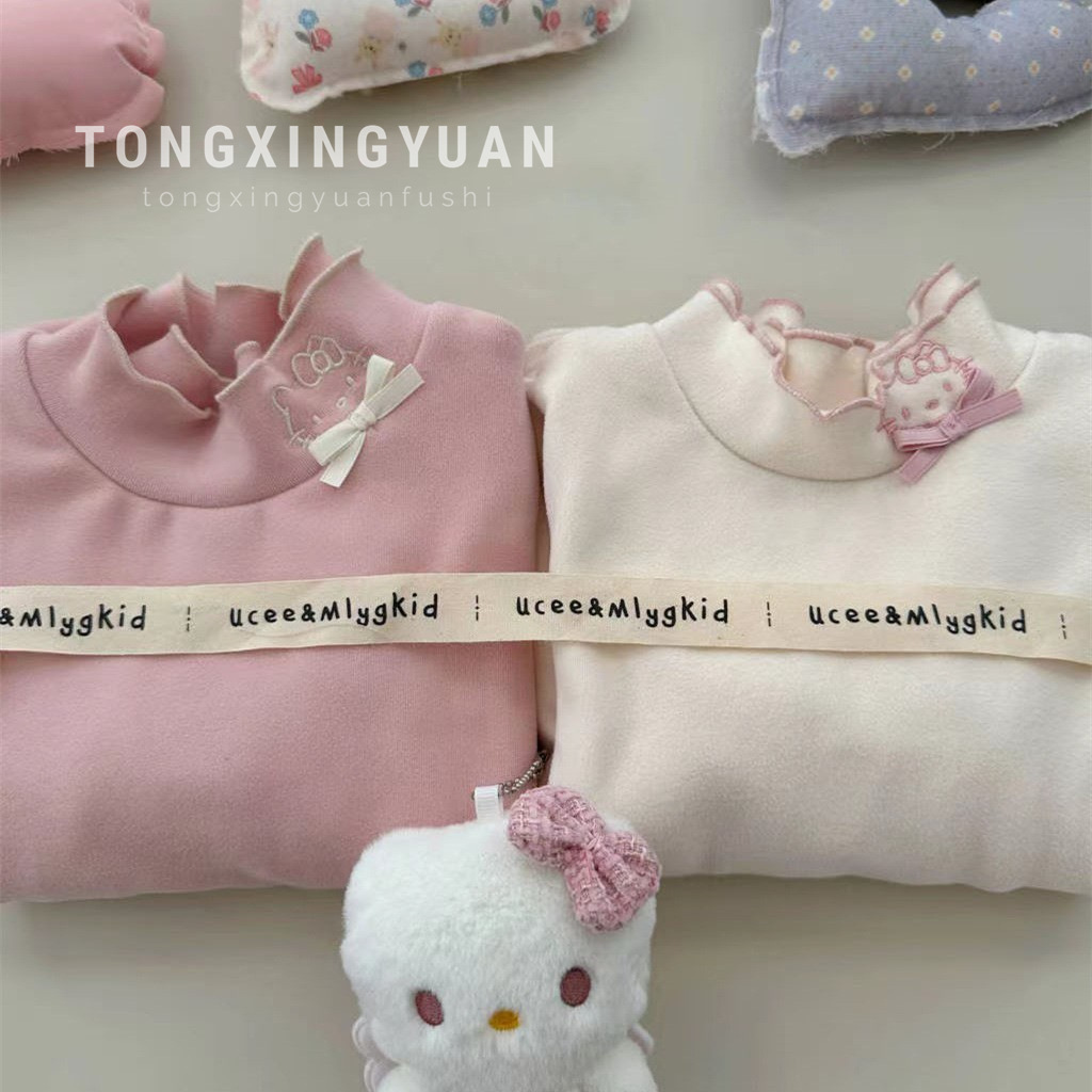 童星源一体毛绒2025冬新作おしゃれで万能な裏起毛ツーピースセット厚手漫画風カジュアルスウェット