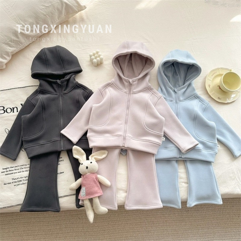 童星源三点セット2025冬服、上品なポーラーフリース女児用ジャケット、万能な綿入りカジュアルパンツセット