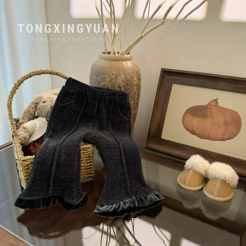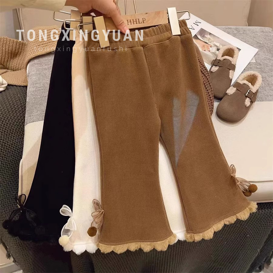 女の子の韓国版とベルベットの厚い蝶結びのズボン2023冬の赤ちゃんのカジュアルなレースのストレートパンツ秋冬