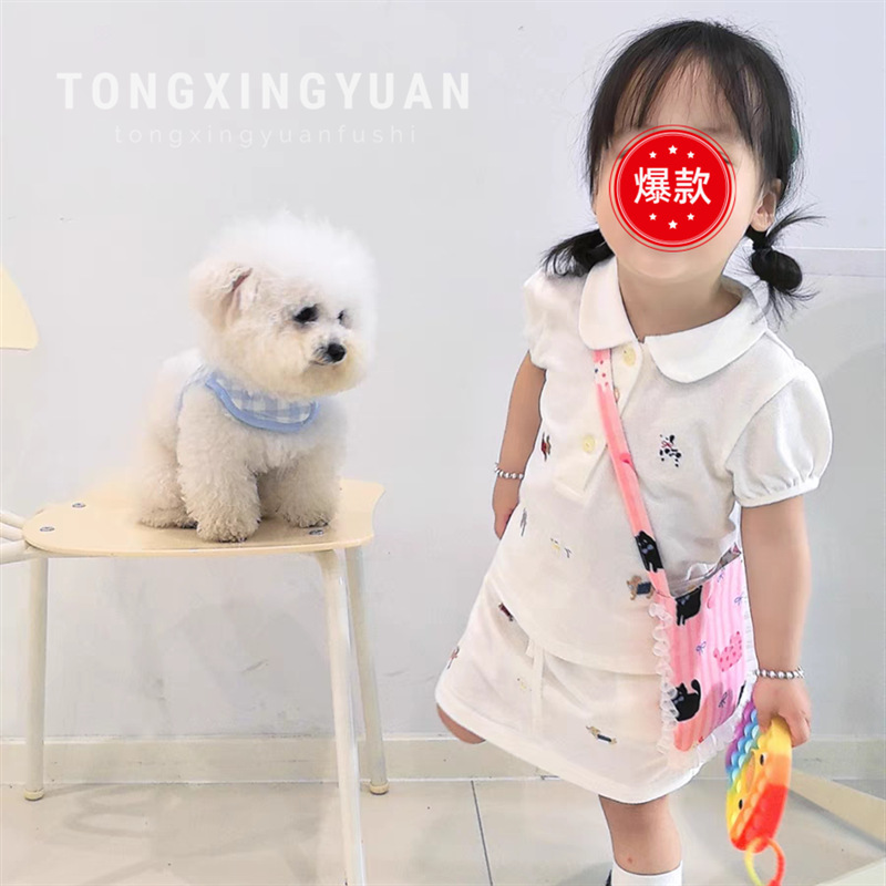 童星円小アンドロメダが着ている! 重工布刺繍女赤ちゃんpoloシャツ半袖学院風スカートセット