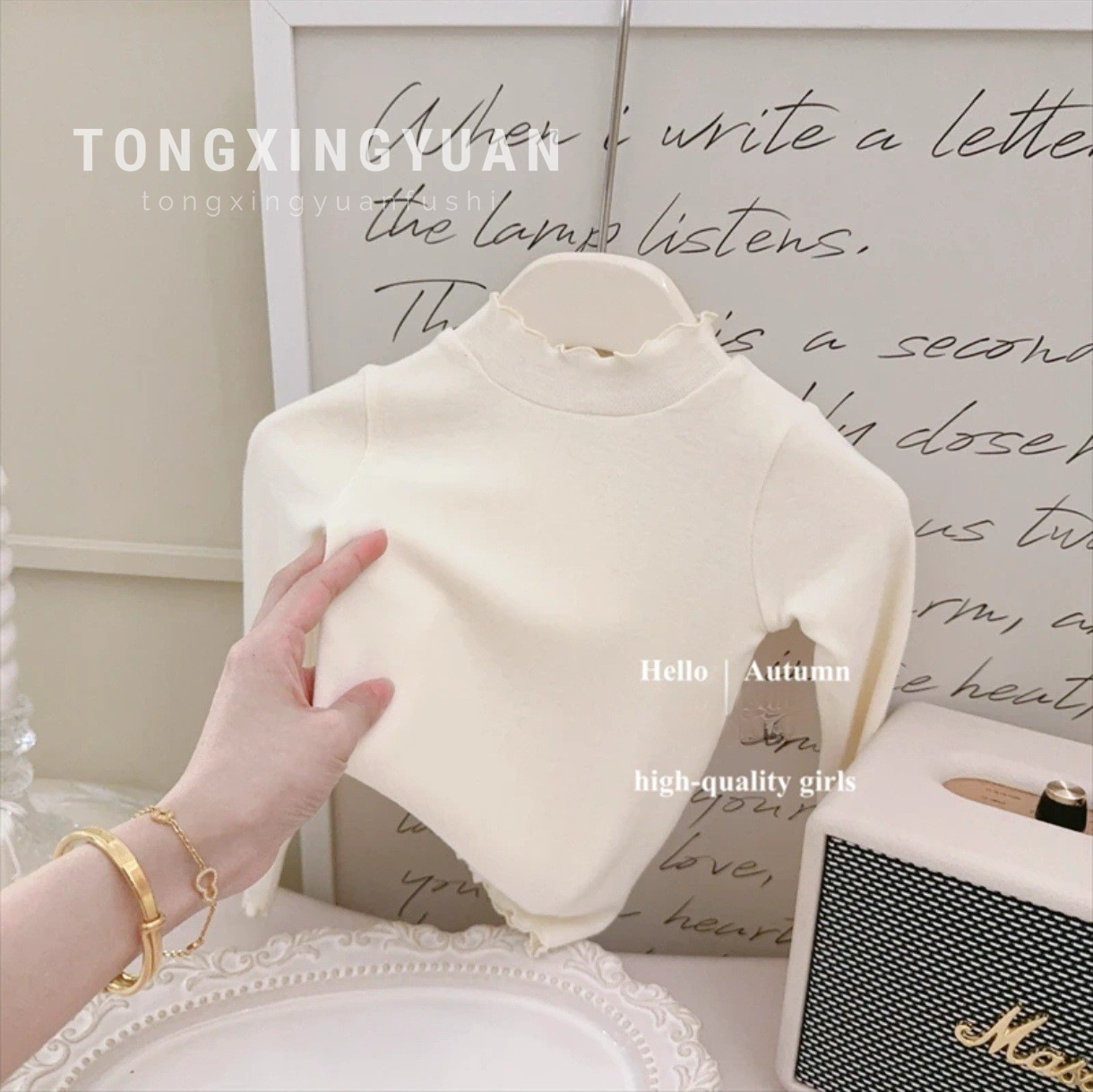 童星園2025秋新作 女の子 韓国風 シンプル 無地 インナーシャツ Tシャツ 子供服 春秋 起毛Tシャツ