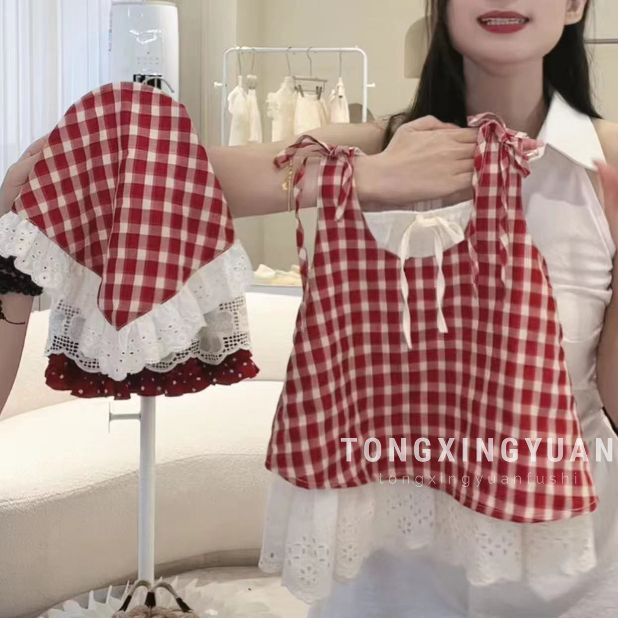 ヘアバンドを送ります!! 女の子の赤い格子の森系のワンピースの夏の新型の子供の女の赤ちゃんのベストのスカートの潮流