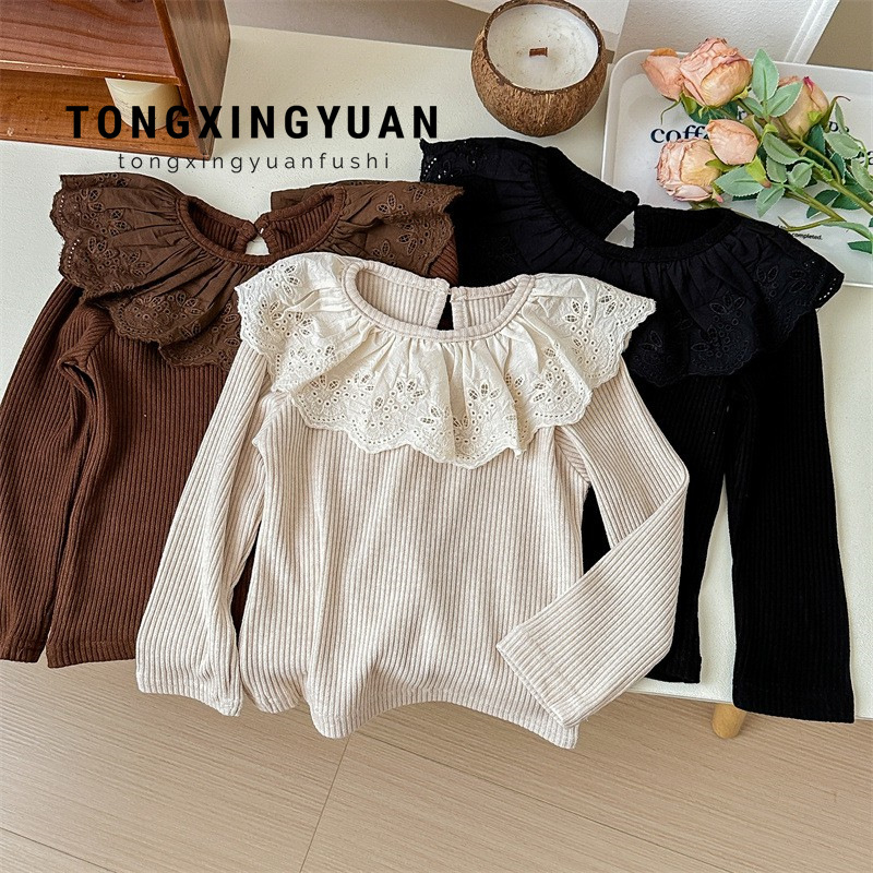 童星源子供服 女の子 2025年秋新作 万能ラペルレースインナーシャツ 女の子用インナーウェア トップス トレンド