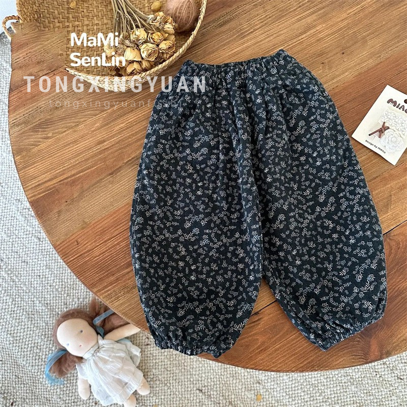 童星源春秋子供パンツ2025秋新作韓国子供服森風ゆったりins風花柄女の子ランタンパンツ