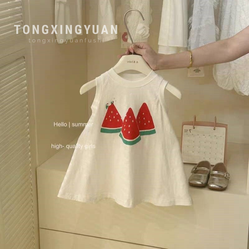 子供の星の丸い女の子の新型の夏の洋風のかわいいプリントのワンピースの赤ちゃんの綿の質のおしゃれな百合のベストのスカート