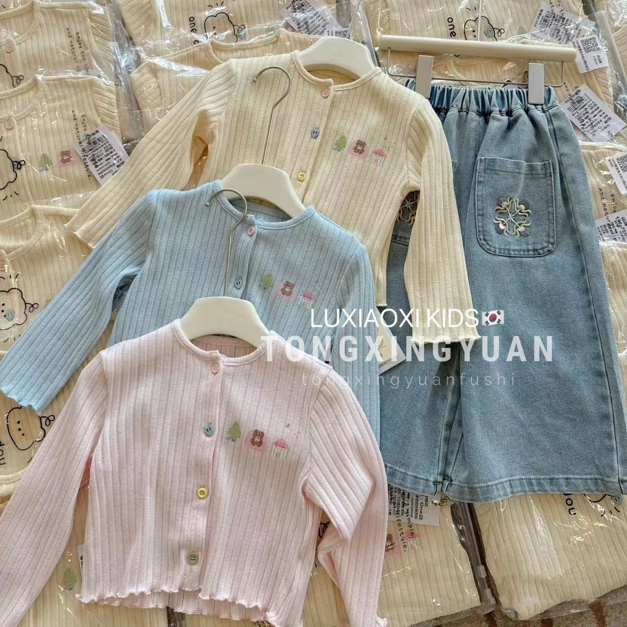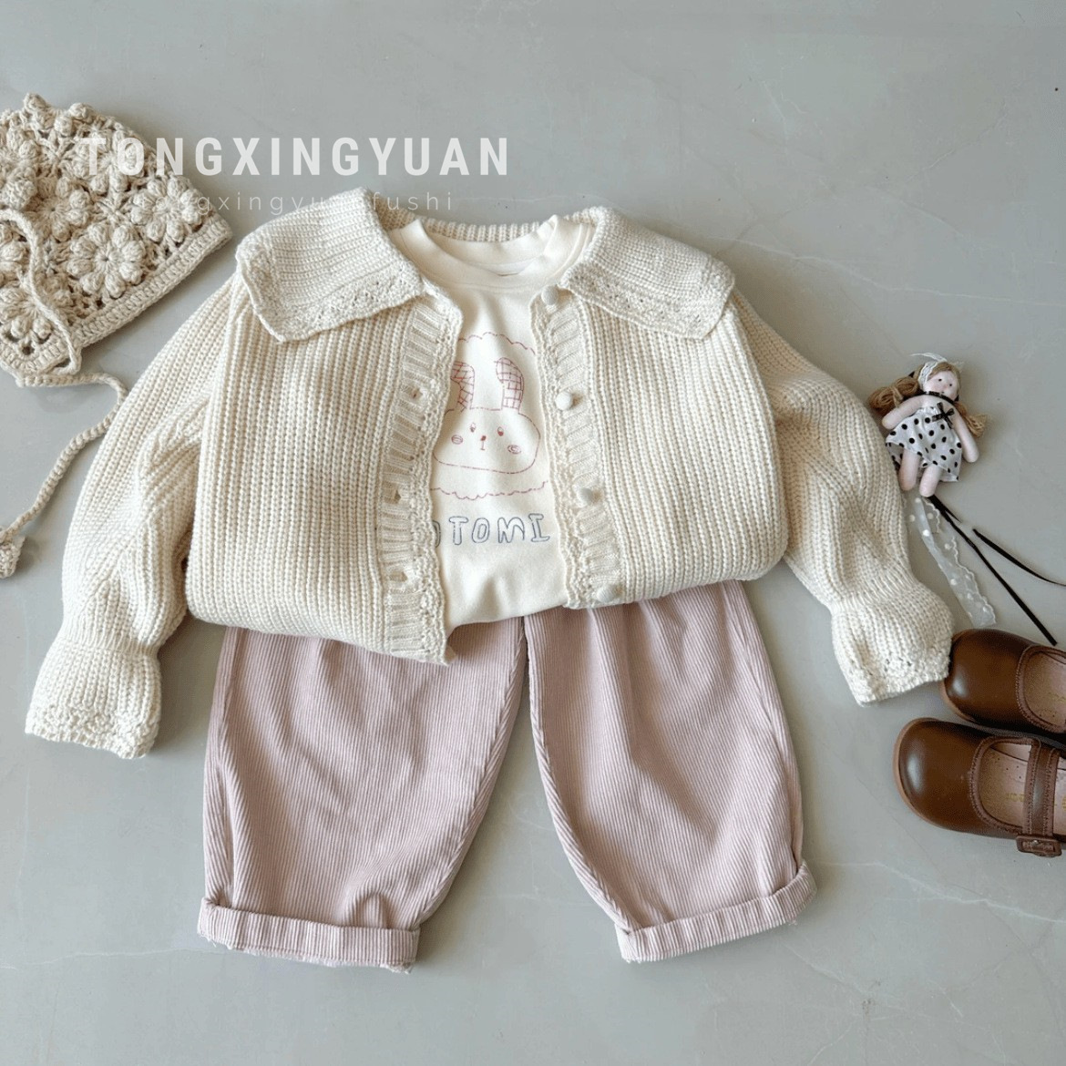 童星円秋装韓国童装新女の子洋気ニットカーディガン少女カジュアルパンツ底三点セット