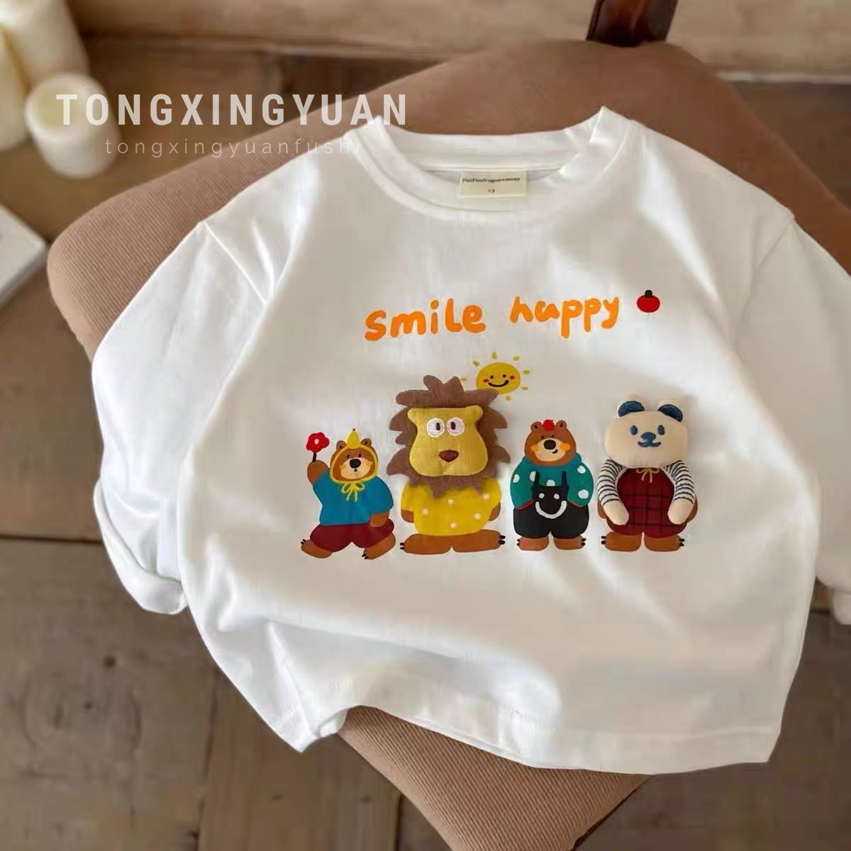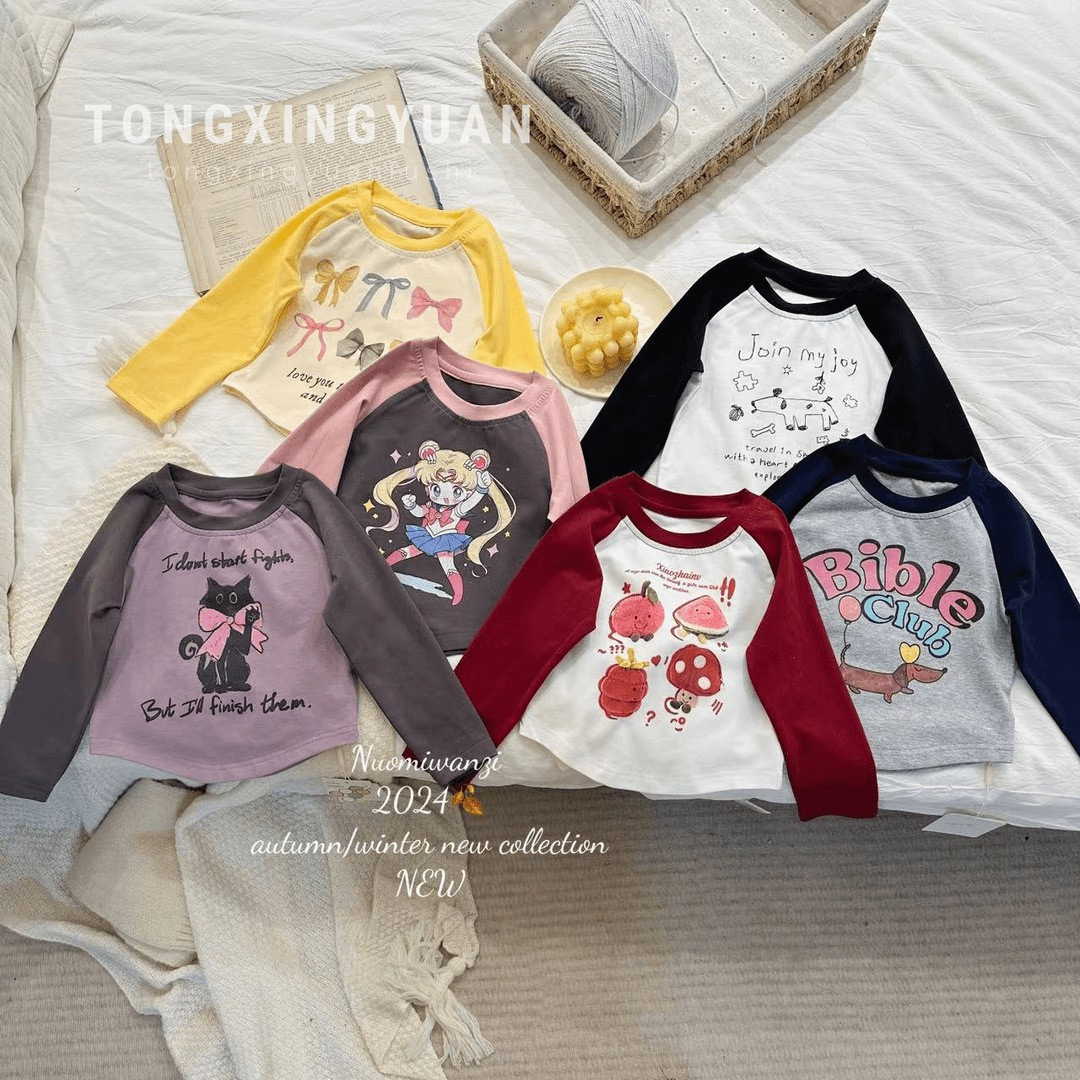 童星園2025秋物子供服 日系Tシャツ 中小児服 男の子 女の子 長袖春秋服 漫画T