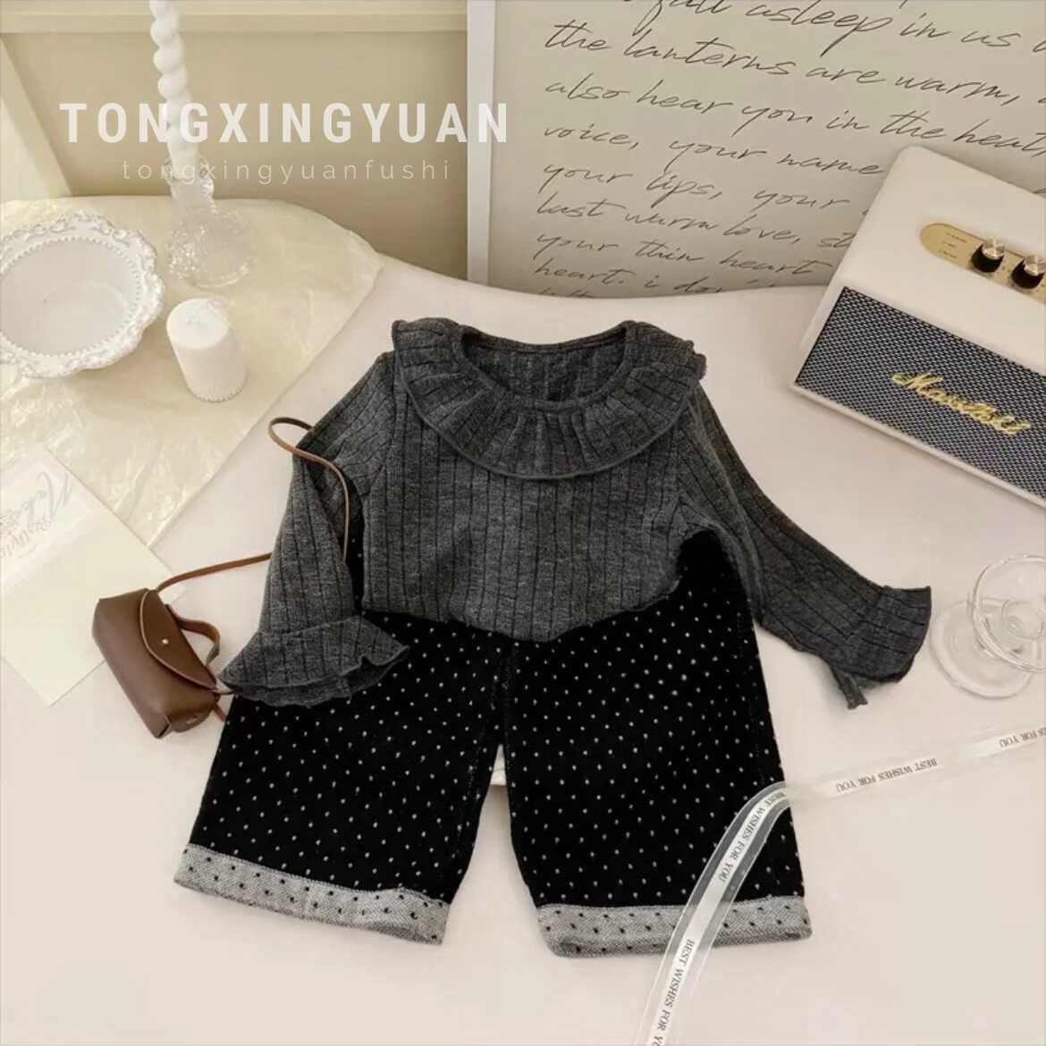 子供星円の女の子の秋の服の新型の洋気の流行のスーツの韓国版のカジュアルな底のシャツの波のズボンの春と秋の2つのセット