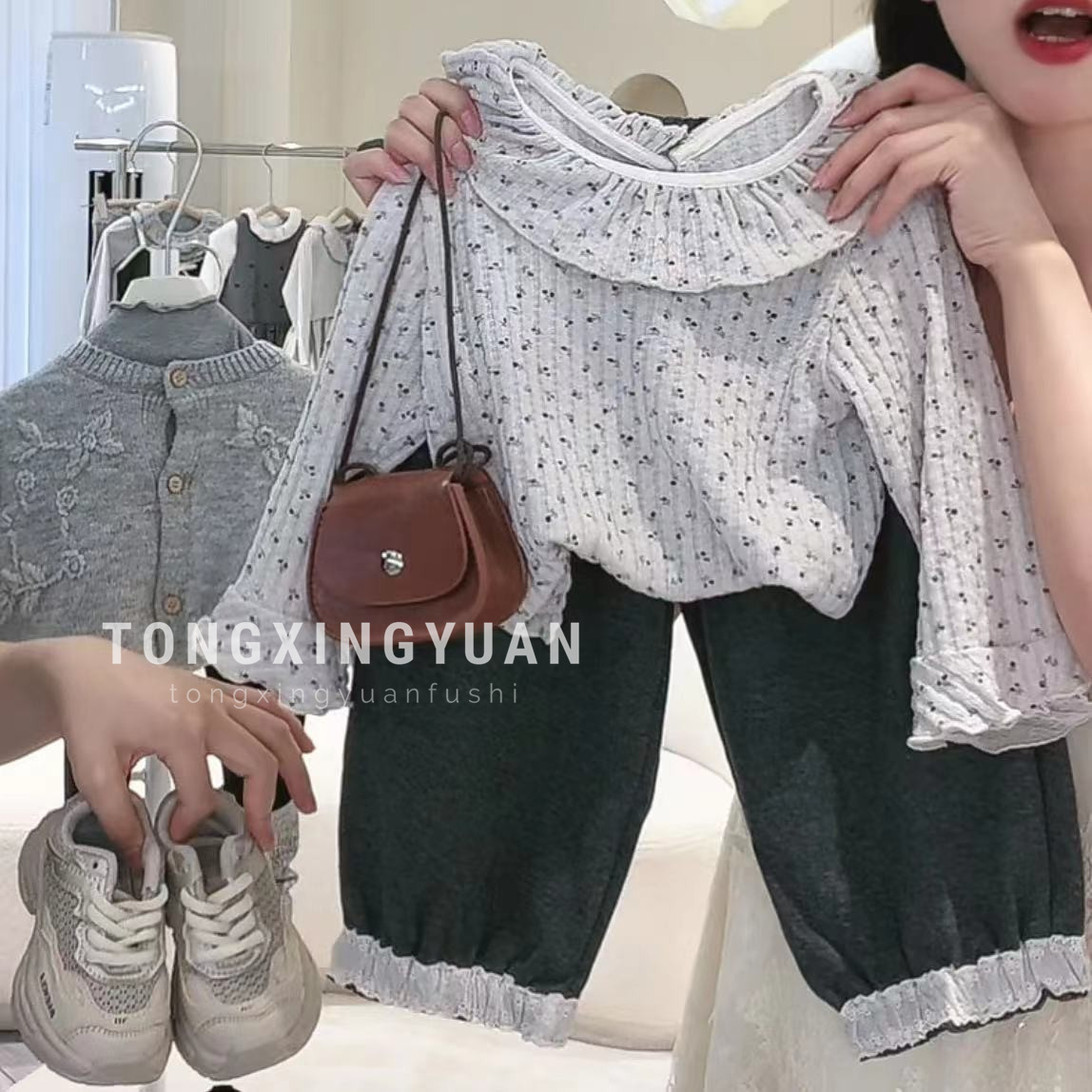 子供星円子供2025秋の新型女の子の柔らかい底のシャツの花の上着の灯籠のズボンの春と秋のスーツ