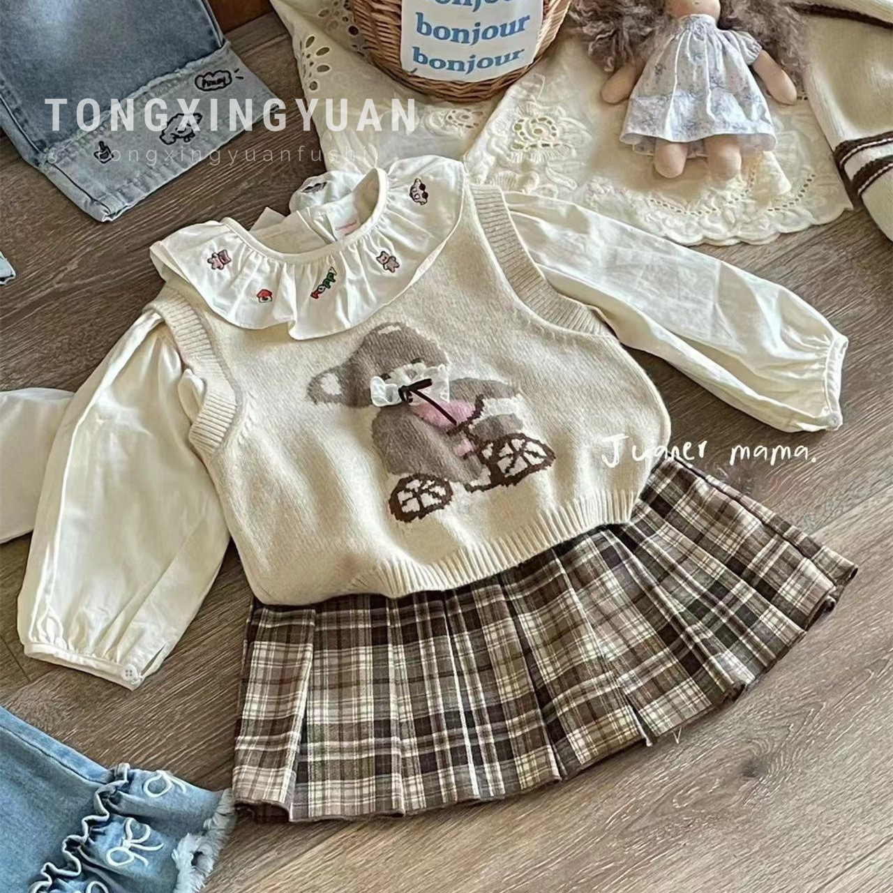 【秋の三点セット】童星円熊セーター馬甲刺繍シャツ百パートナースカート春秋セット学院風
