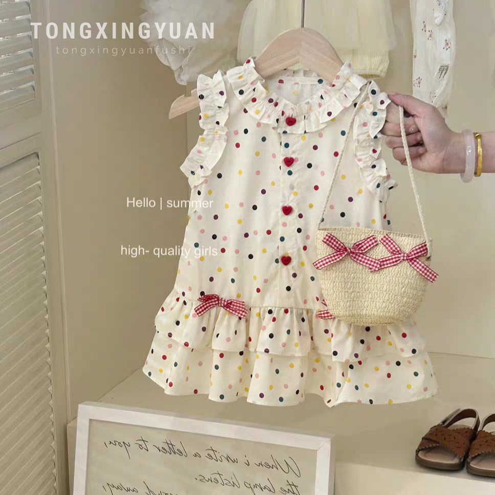 子供星円女の子洋気ワンピース夏新作子供学院風Polo襟袖なしベストスカート