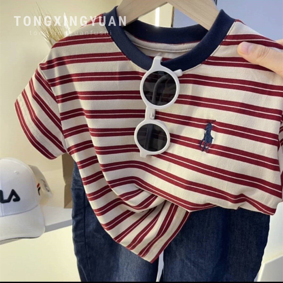 トンドスターヤン子供用Tシャツ2025夏モデル女の子用ストライプ半袖新商品子供服男女兼用ベビーTシャツ吸湿発散性