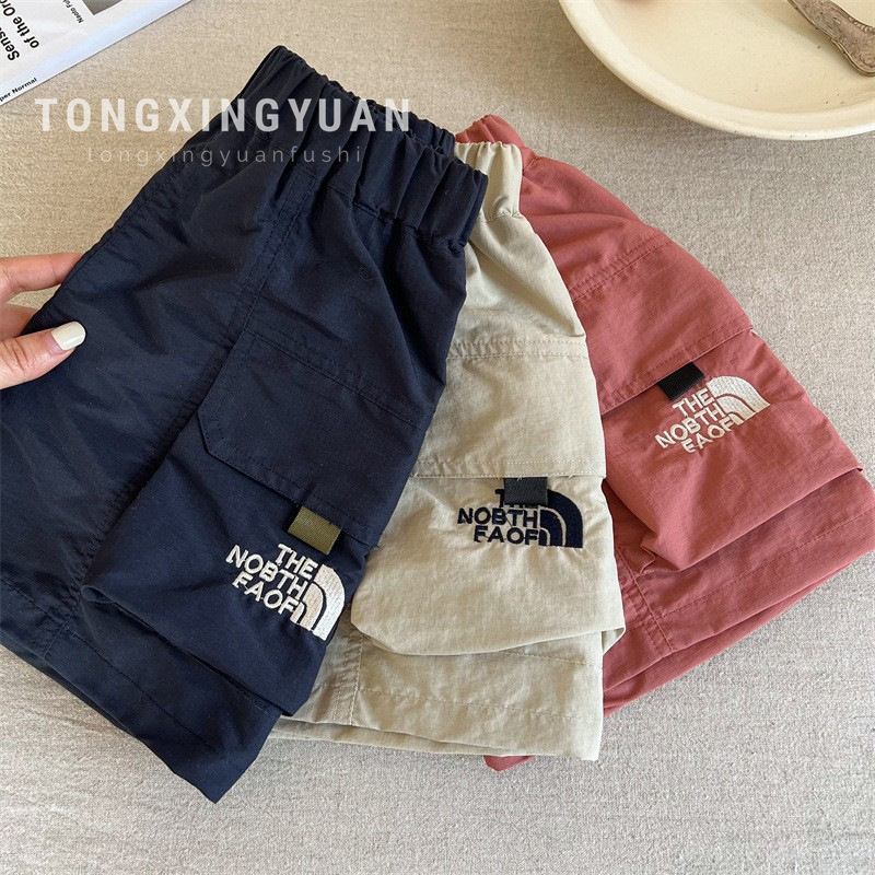 童星源男女児童用2025夏アイスフラワーコットン涼感ラベル付きショートパンツ、ベビー用ハンサムでゆったりとした五分丈カーゴパンツ、トレンディ