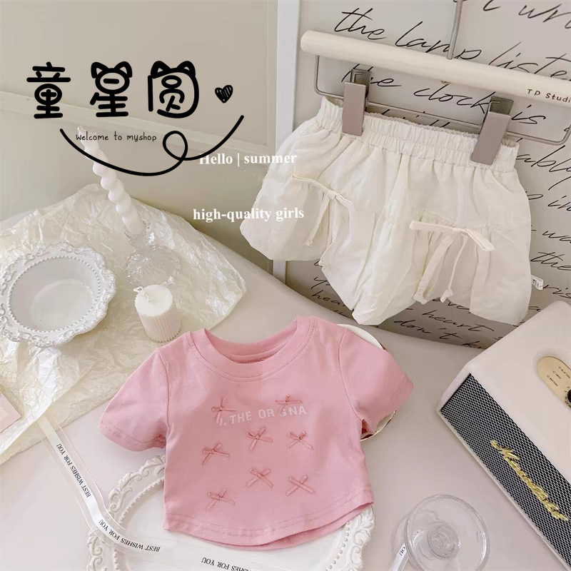子供星円夏の新型超甘いバレエ風姫小蝶結び上着半袖花つぼみスカート女赤ちゃんセット