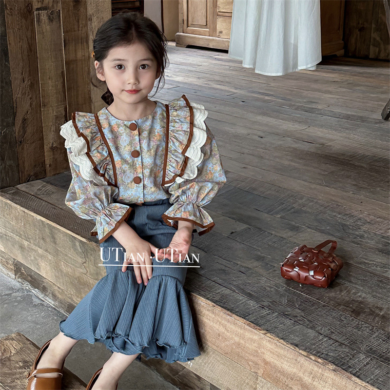 童星円韓国版女の子スーツ春と秋の洋風の甘い花の上着の流行のつぼみのズボンのネットの赤い2つのセット