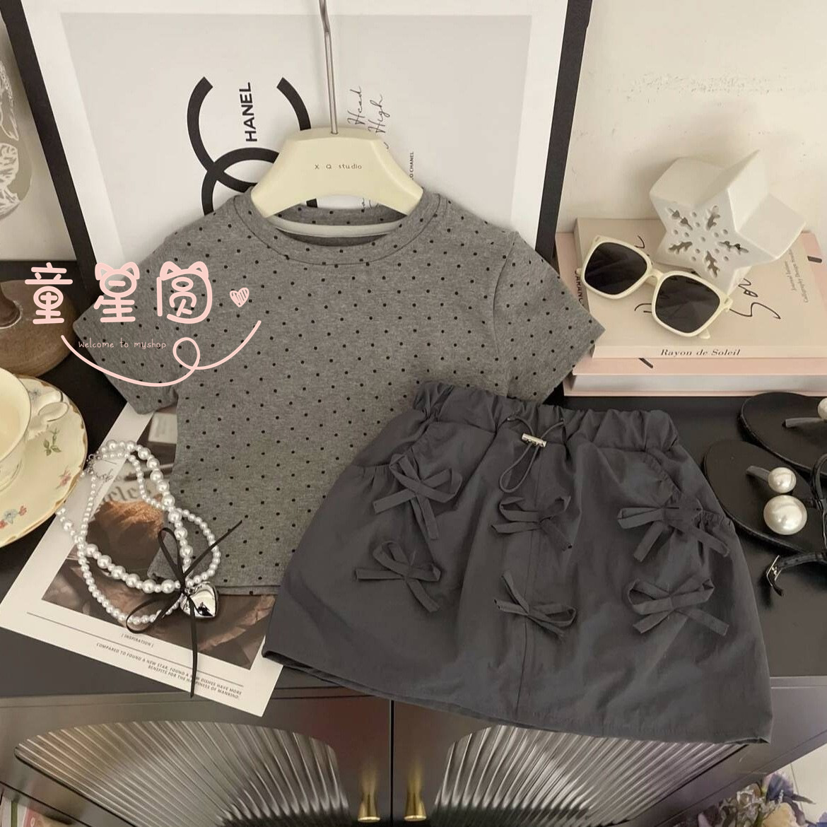 童星円韓国版少女夏の新型韓国版洋気波点ファッションtシャツ洋気スカート2点セット