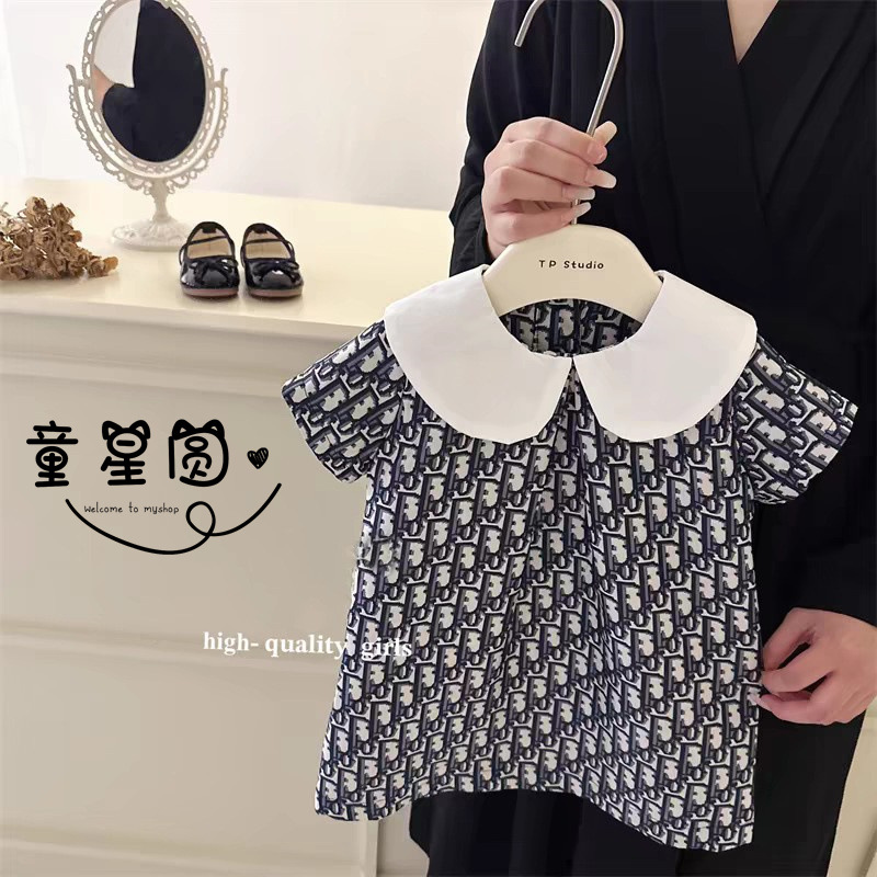 子供の星円高定シリーズの女性の子供服の夏の新型の赤ちゃんの洋気の子供の襟のジャカードの襟のワンピースのファッションの金