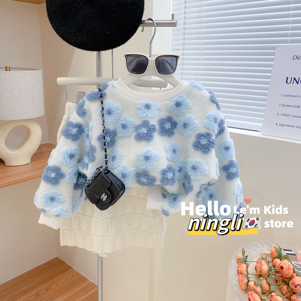 洋気童装2024冬の新型少女韓国版ins立体花二重ベルベット厚手のセーター
