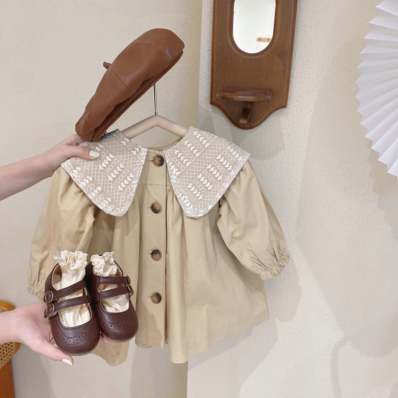 女の子の秋冬服、ミドル丈のコート、韓国風、ベビー女の子、英国風、大きな襟、無地のウインドブレーカー、秋の新作