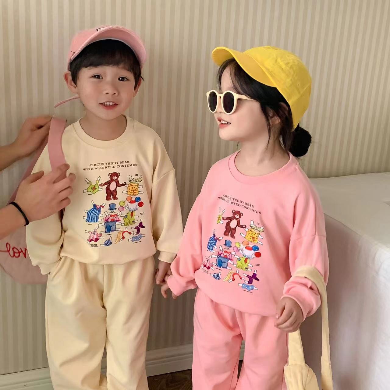 韓国の子供服2024秋の女の子の漫画のプリント秋の洋気の衛のズボンの子供の運動のスーツのファッションの金