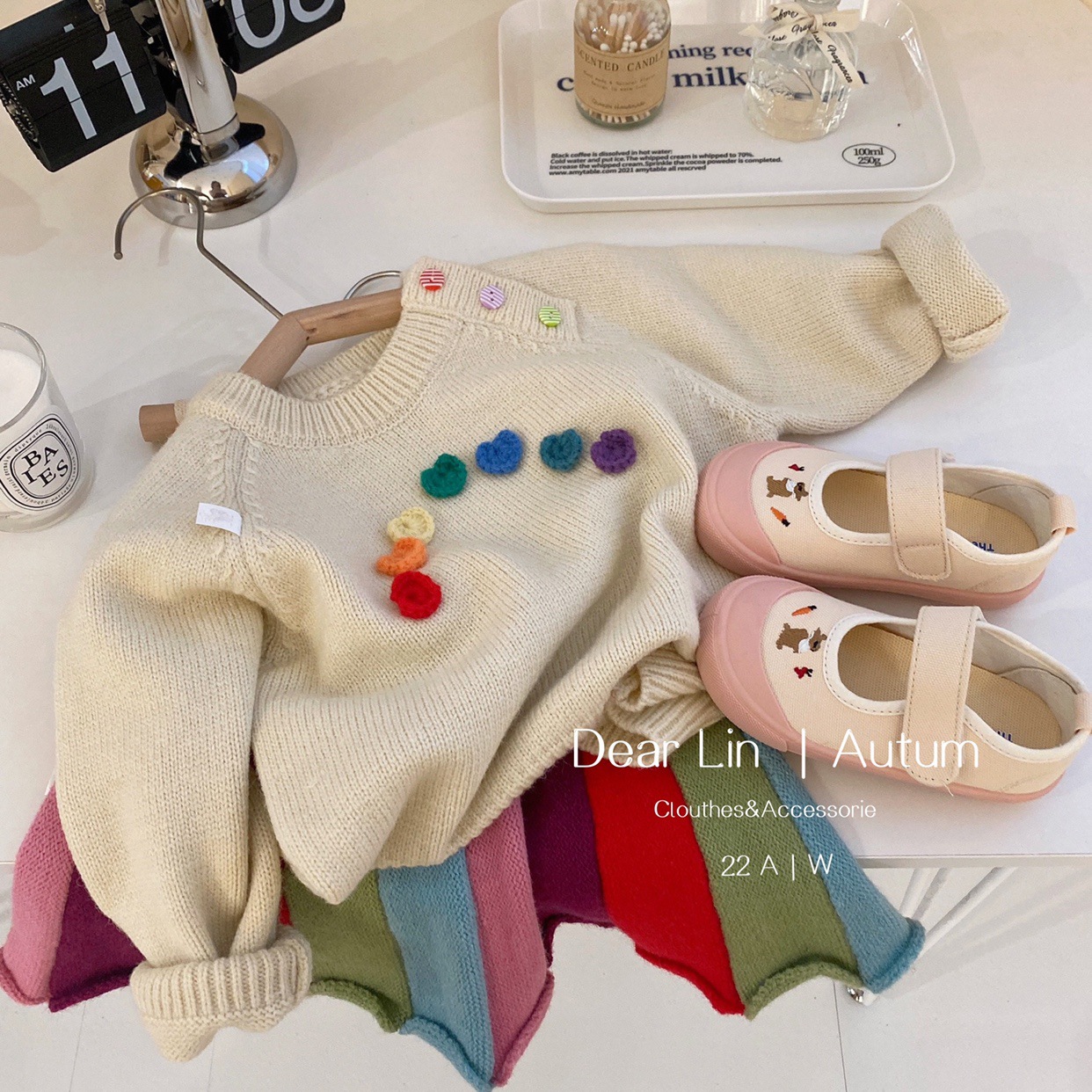 韓国版2024秋冬服新型女の子洋気純色ニット子供百合上着赤ちゃんセーターコート