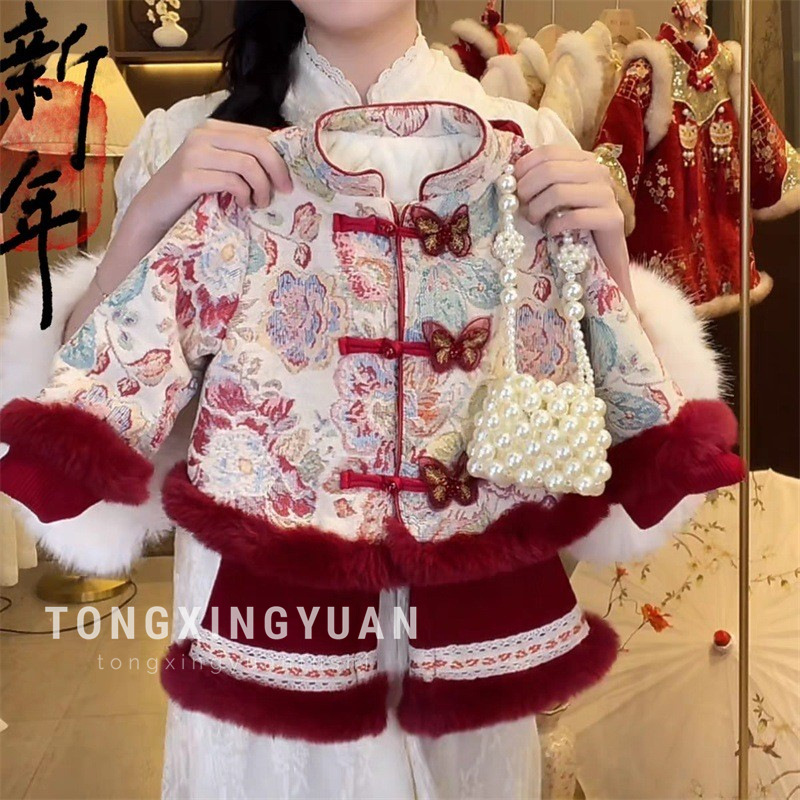 女の子の漢服は正月に新年を祝う服です。秋冬の子供の国風の新しい中国式のスーツです。