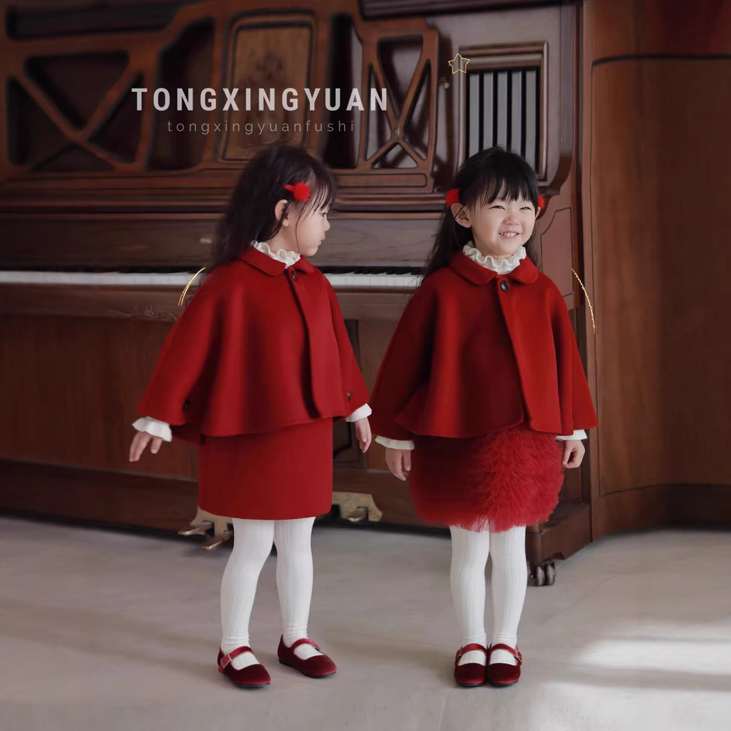 童星円新製品 | 新年b入! 女の子の気質のウールの手作りの両面の尼のマントのベストのスカートは新年の服を祝います。