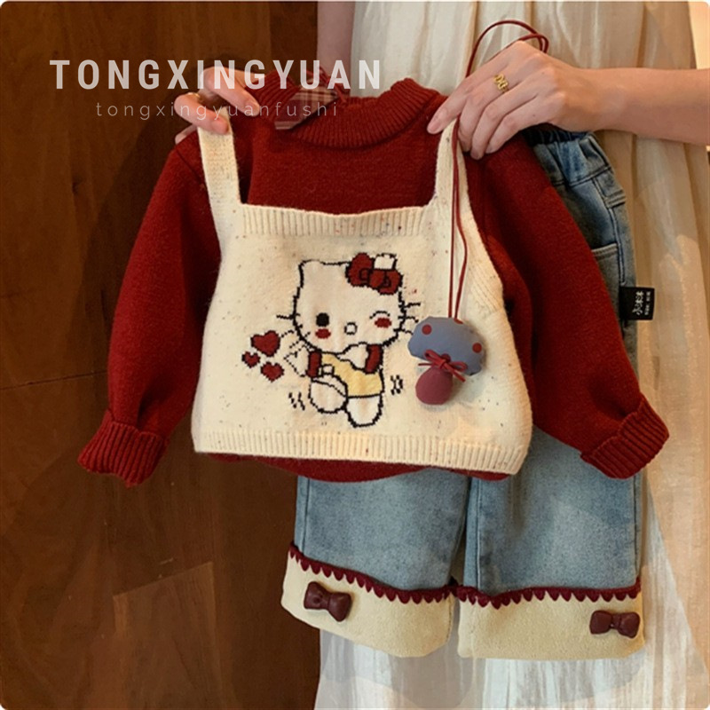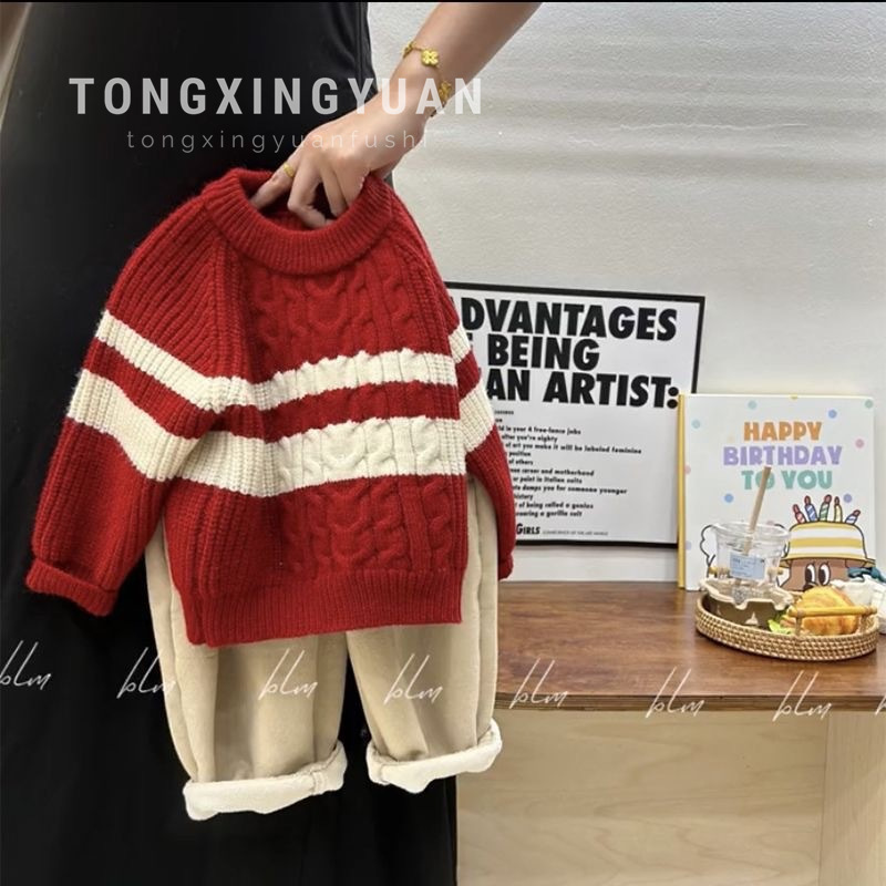 子供星円新年アンコラ赤いセーター2024秋冬にマントのニットの上着を重ねて着ます。