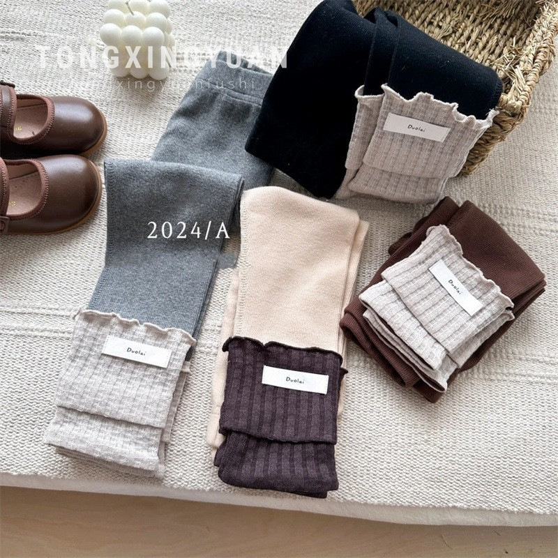 子供の星の丸い女の子の甘い秋の新型の子供の韓国系の百合の洋風のつなぎ合わせの金は底のレジャーのズボンの春秋を打ちます