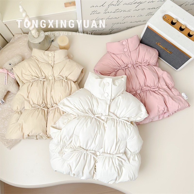 女の子用ベスト 2025年冬新作 おしゃれな女の子用アウター 厚手綿入りベストジャケット 子供用保温トップス