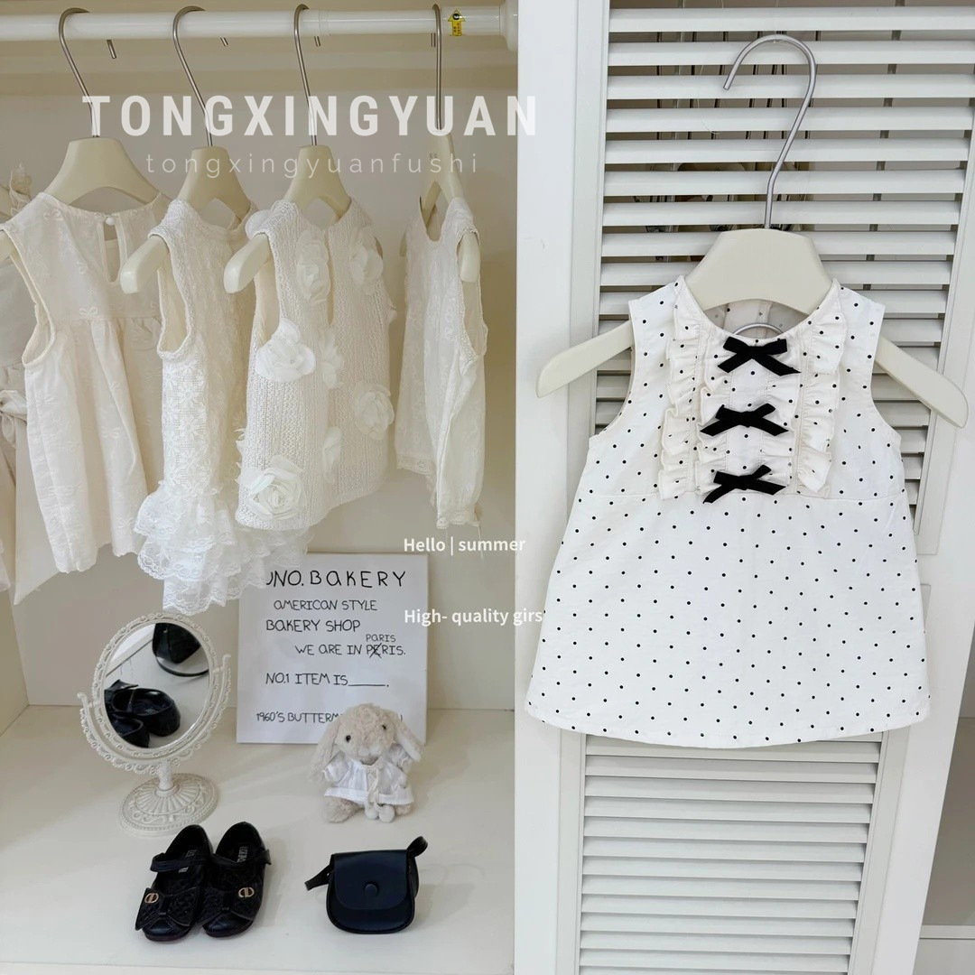 Tongxingyuan 新しいオリジナル高精細女の子夏フレンチ水玉スカートリボンベストドレスファッショナブルなドレス