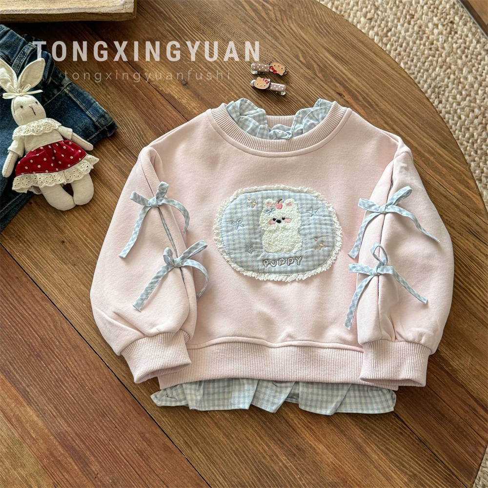 女の子トレーナー春と秋 2025 新しい女の子偽ツーピース服子供服ベビー秋長袖トップス