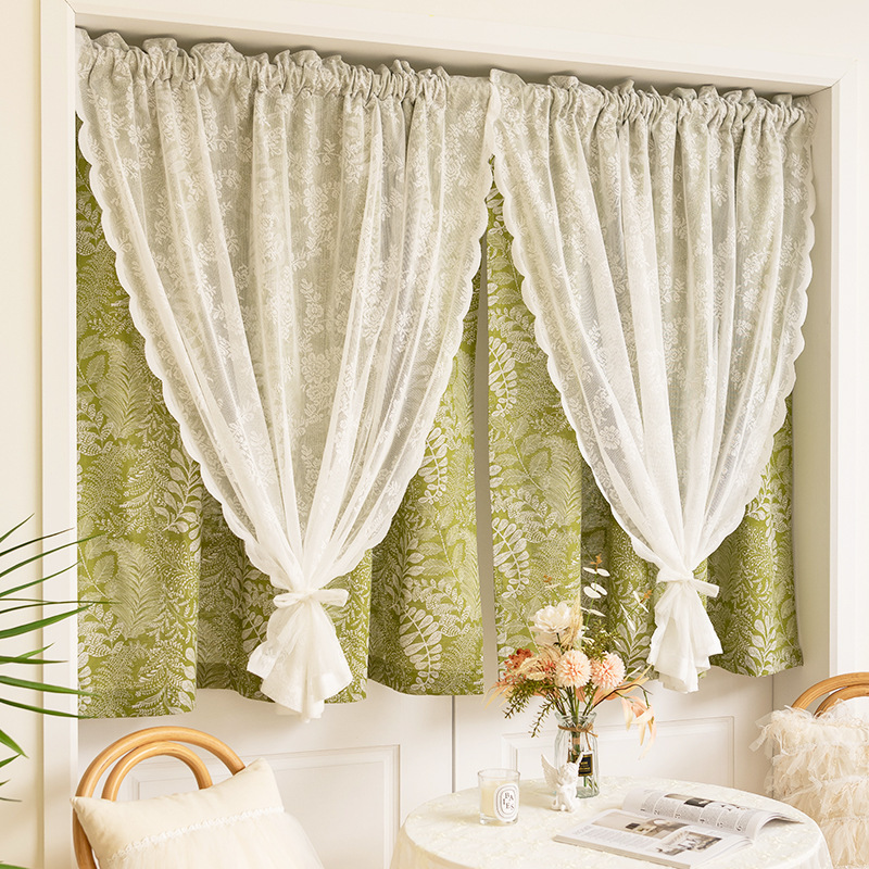 フレンチレトロ二重レースカーテンアメリカンハーフカーテン田园风グリーンフレッシュドアカーテン寝室キッチン仕切りカーテン