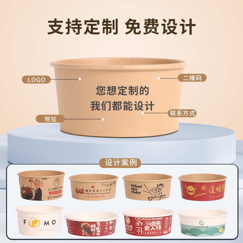 使い捨て牛革耐高温カップラーメン紙碗業務用テイクアウト弁当箱円形果切箱野食箱