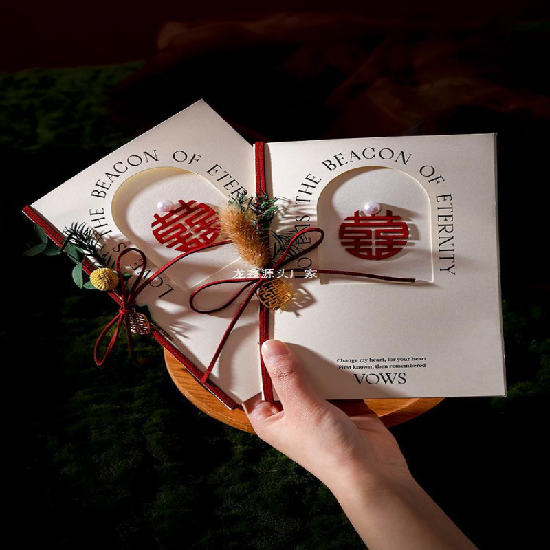 結婚式の誓いのカード、結婚式の誓いのスピーチのペア、高級フォレストスタイルのニッチで新鮮な誓いのカード、折りたたみ式