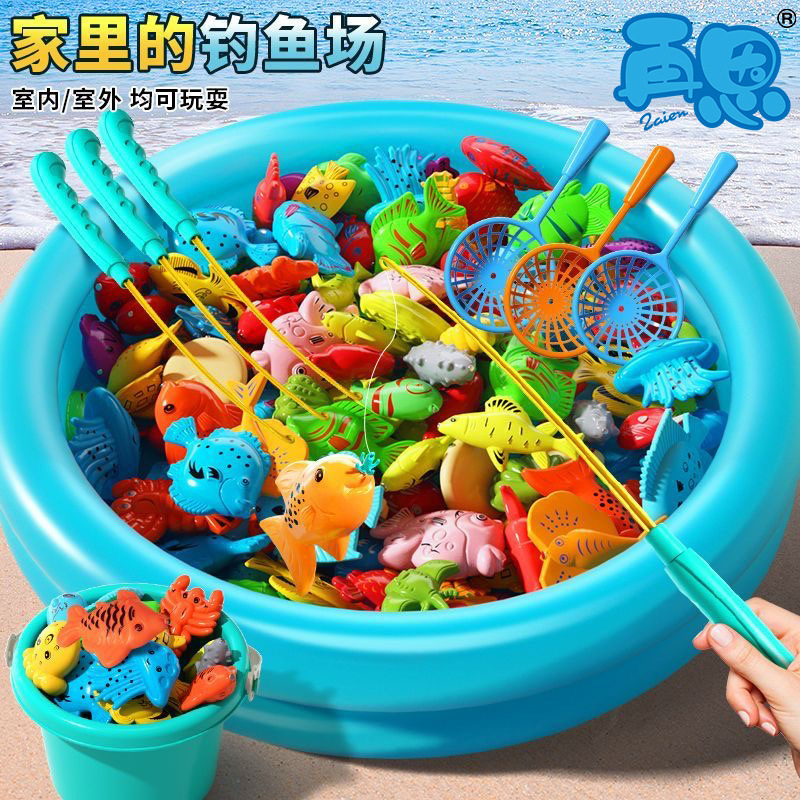 子供用釣りおもちゃプールセット磁気釣竿釣りままごと赤ちゃん教育早期教育家庭用プール