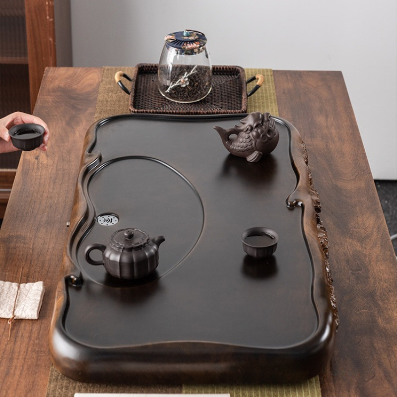黒檀木茶盤家庭用丸太茶海茶台トランペット長方形原木花梨トレーシンプル排水