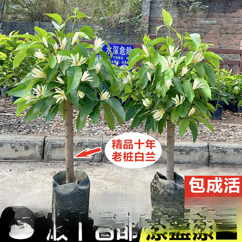 白蘭の鉢植えの古い杭の玉蘭の苗木の黄角蘭はつぼみの室内の庭の濃い香りのタイプの四季が花を咲かせます。