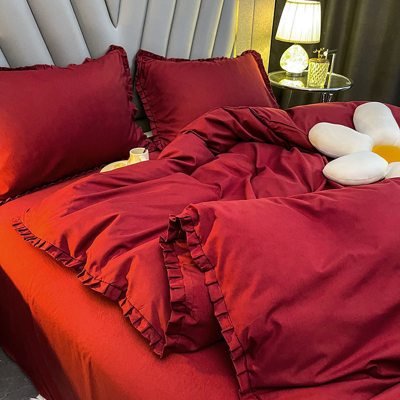 シンプルな純色の赤い毛磨き四点セットのシーツ三点セットの学生寮の寝具