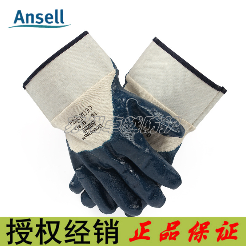 Ansell安思爾48-913経済型ニトリルコーティング耐摩耗性耐油手袋安全袖口12組/打