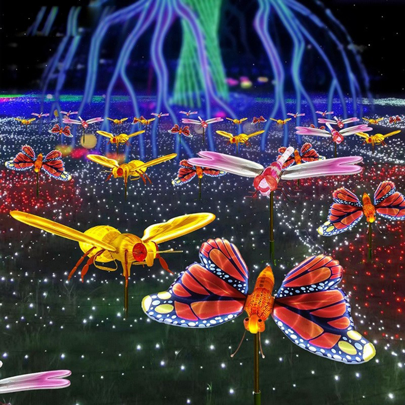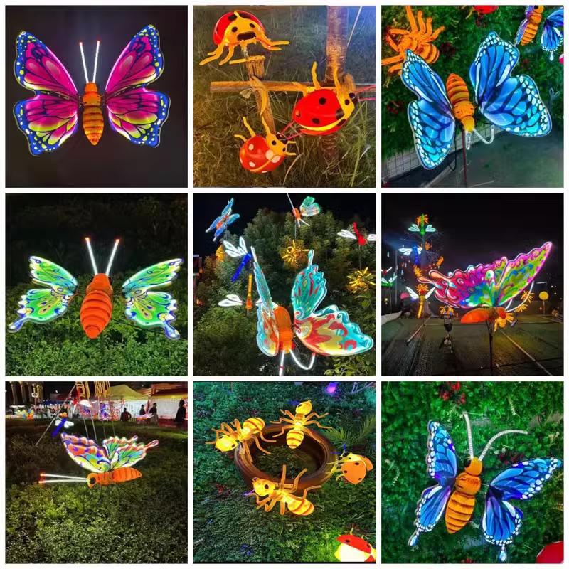 屋外の動的蝶動物灯が光るミツバチトンボアリ観光地区公園が明るくなった景観装飾ランプ