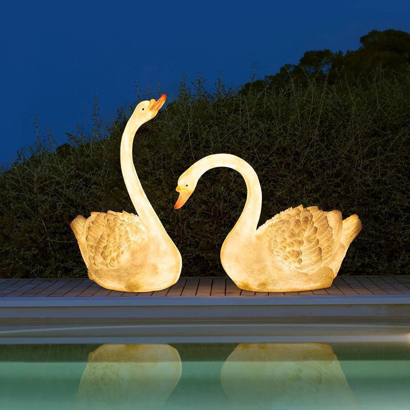 屋外庭園灯屋外庭園景観置物発光白鳥彫刻花園帯灯動物園区小湖のほとり