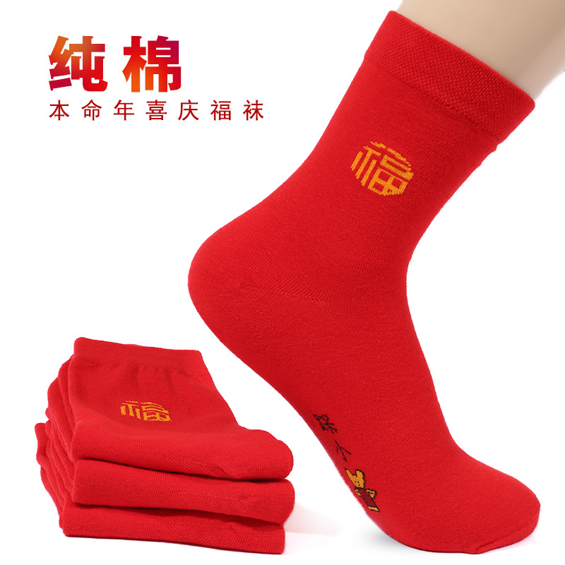 綿本命年兎年紅靴下福字お祝い紅靴下結婚靴下精練綿成人秋冬卸売り