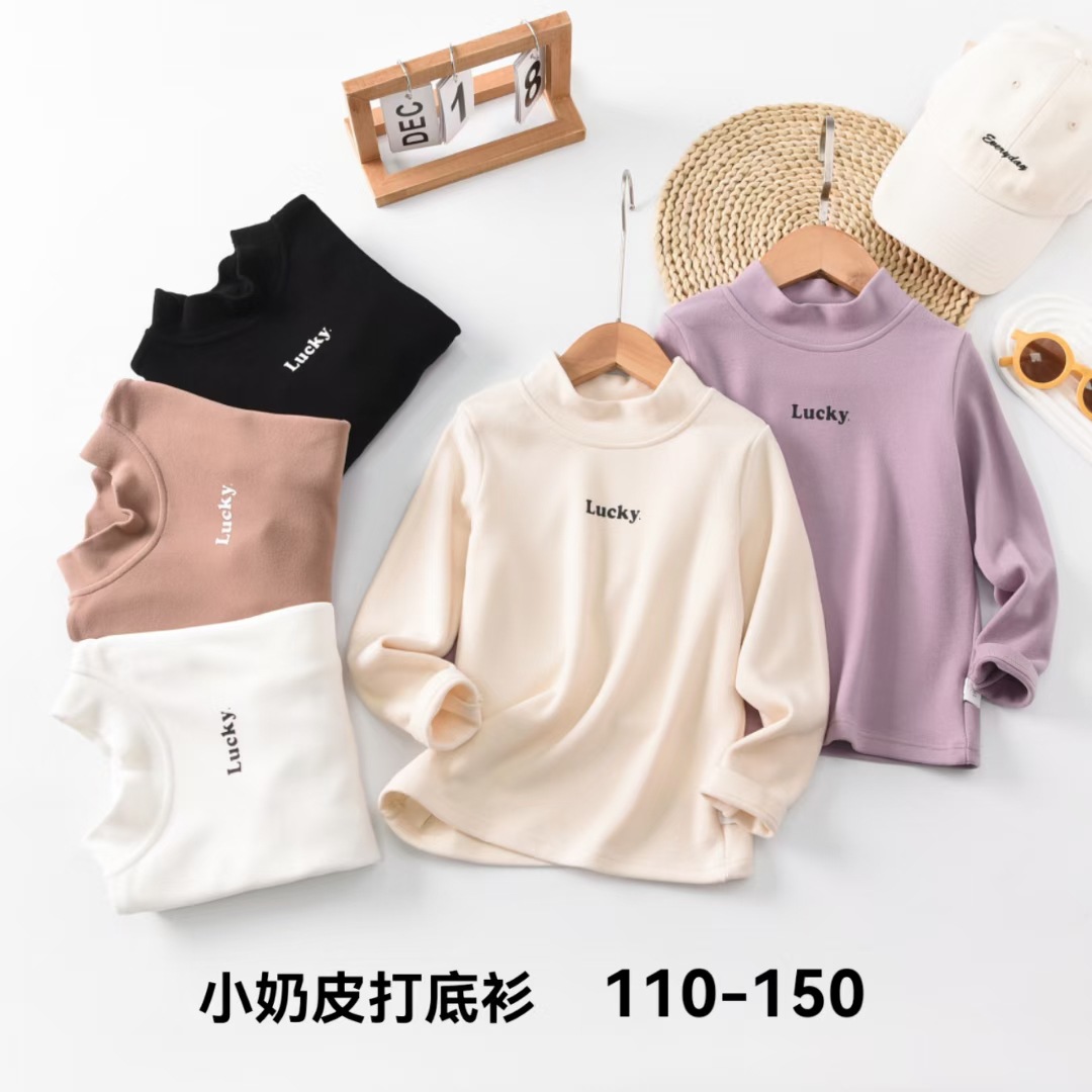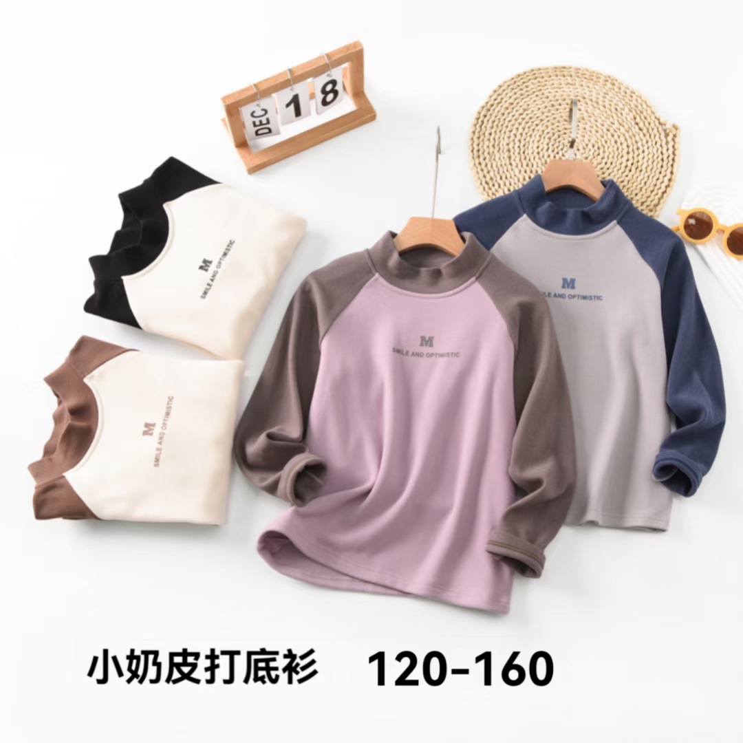 24秋冬の新型子供の厚徳の絨毯の底のシャツの韓国版の中で大きい子供の半高襟の長袖のtシャツのatn913