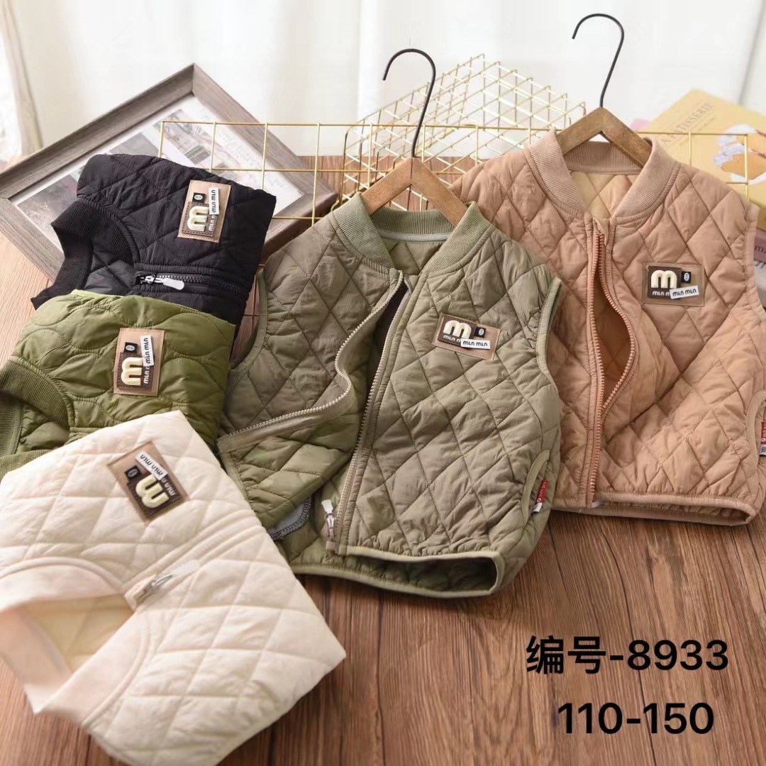 冬の子供の薄い綿の馬甲の韓国版の男の子の女の子の立襟の馬甲の菱の形の格の馬はファスナーの綿のベストを挟みます。