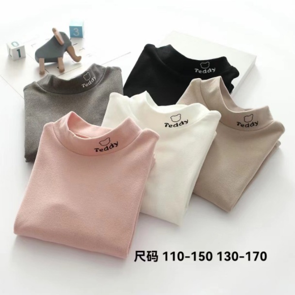 秋冬の子供の大きい版の底のシャツの韓国版の中で大きい子供は厚い半高襟のtシャツの小さい乳の皮の保温の長袖のatn91