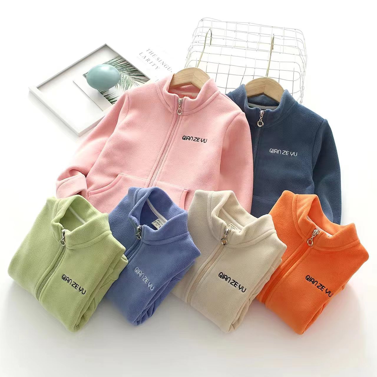 秋冬の奥粒の絨毯の子供の上着の韓国版の男女の潮の子供のオリーの絨毯の立襟のカーディガンのファスナーの上着のlq9271