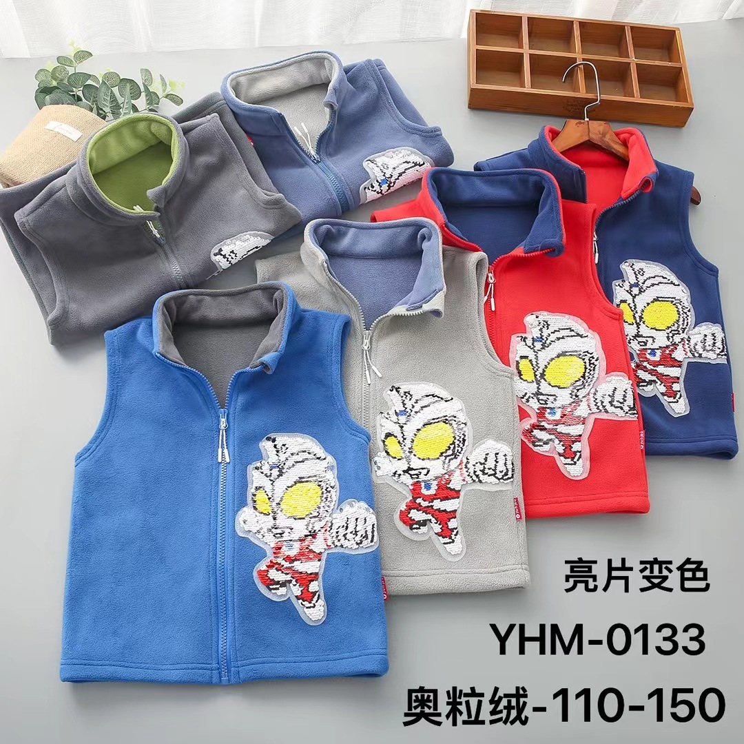 奥粒の絨毯の男の子の馬甲の韓国版のスパンコールの変色の漫画の男の子の馬甲の秋冬の子供の立襟のベストのhb 1091