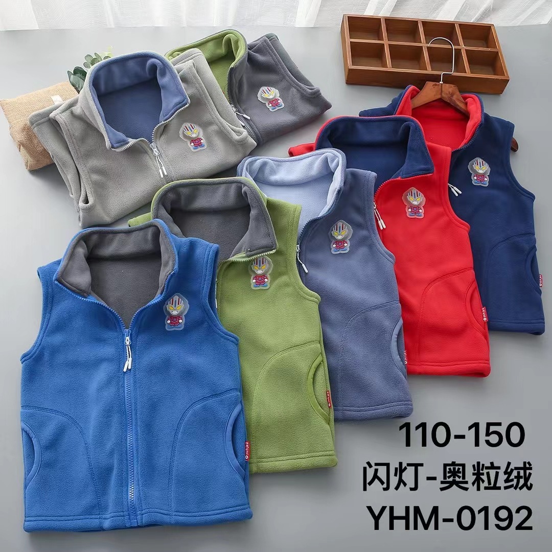 韓国版の男の子の漫画の馬甲の秋冬のタイプの男の子のフラッシュライトの奥の粒の絨毛の馬甲の男の子の赤ちゃんの立襟の馬甲のhb 1090