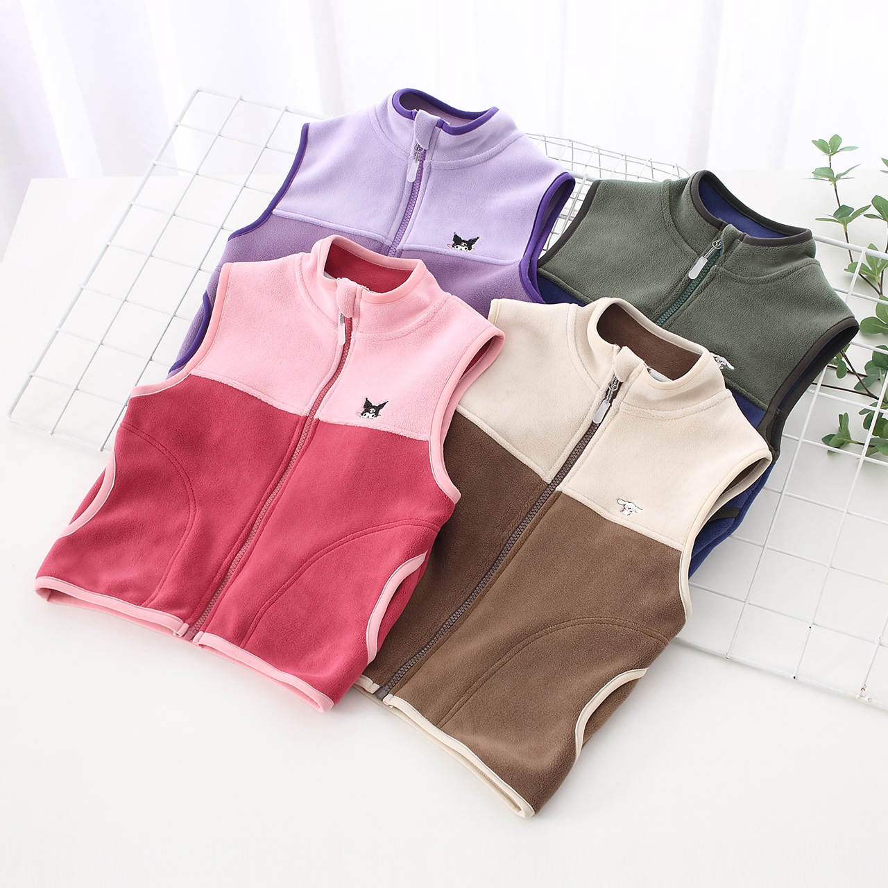 子供の奥粒の絨毯の馬甲の秋冬の新型の男の子の女の子の漫画の顔は色を合わせます馬甲の韓国版のベストのlq9272